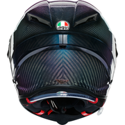 Accessories include: hydration system, interior customization kit (top crown pad, rear crown pad and cheek pads), tear-off kit and vent covers, Titanium Double D retention system, Shell, 100% carbon fiber, Shell and 5-density expanded polystyrene (EPS) structure designed to minimize rotational accelerations (FIM homologated), Collarbone safe profile, Ventilation, 2 rear extractors and 5 front vents, Metal air vents and extractors, Aerodynamics, Race suit fitment, Detachable PRO Spoiler, Interior, 2Dry: instant sweat absorption, 3-piece adaptable crown pad fit, 360° Adaptive fit, Cheek pads safety release system, Shalimar fabric cheek pads for soft and stable fit even at high speed, Elastic and breathable microfiber crown pad, Removable and washable interiors, Micro sense: premium skin comfort, No stitches in sensitive areas, Removable nose guard and wind protector, Breathable neck roll fabric with elastic and waterproof inserts