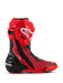 Almost every component of the Supertech R Vented Boot, Alpinestars definitive racing boot as worn by a roster of champions past and present, has undergone a rigorous program of upgrades to sharpen its performance features even further. Featuring extensive perforations throughout for maximum airflow, innovations derived using feedback from Alpinestars involvement in top flight racing include a newly redesigned front flex area, a redesigned rear bellow, a redesigned top gaitor, a new shifter and shin plate, a new shin slider and a new inner bootie, all of which enhance the comfort, protection and the performance of this boot to a new class-leading high.