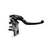 The master cylinder body is made of forge aluminum alloy, machined with 5-axis CAM technology. A hard oxide coating is used for the surface finish, which guarantees that the master cylinder main body is highly resistant to wear and its components move easily. The floating piston and the seals derive directly from those used in MotoGP, as do the housings for the bleeding and fueling systems, which are inclined by more than 30° to make bleeding the master cylinder easier. A study was conducted for the design of the 19RCS CORSA CORTA in order to find consistency of style between all the components of the master cylinder, which now has a distinct, dynamic and sporty look in line with the style of the bikes for which it was conceived (model or design filed simultaneously with the filing of the patent on the technological solution). The lever assembly can be replaced without disassembling the RCS system (Ratio Click System) from the master cylinder and this allows the calibrations made in the installation phase to be maintained unaltered.