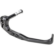 - Two-part structure of the lever protector is paired with an arm made of resistant plastic-glass fiber mix, a clamping element for the steering tube and a black, hard-anodized aluminum bracket
