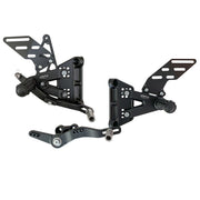 Sistema de reposapiés traseros de competición para uso profesional en circuitos. Desarrollado y probado en colaboración con pilotos profesionales de varias series de competición.