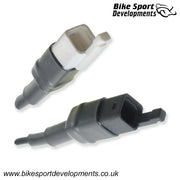 Estos interruptores 'Tipo C' se montan directamente en el cilindro maestro del freno utilizando los dos tornillos de abrazadera originales y una nueva abrazadera dedicada.