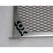 Nuestros protectores de radiador están diseñados para fabricarse sin soldadura. Los marcos se cortan de una lámina de aluminio 5051 de 0,060 mm. La pantalla es de aluminio expandido de 0,034 mm. Luego, los anodizamos para lograr un acabado resistente y sin astillas.