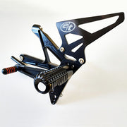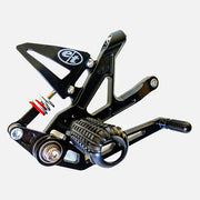 Nuestras estriberas para la Ducati V4R/S se desarrollaron junto con el equipo de carreras Kyle Wyman de MotoAmerica y se probaron rigurosamente a través del programa nacional de primer nivel de KWR. Al igual que con todos nuestros productos, hemos aprovechado todas las características de nuestras estriberas ganadoras de campeonatos que nos han precedido, presentando un diseño altamente simplificado, excelente resistencia a los impactos y las estriberas más cómodas y con mejor agarre del mercado. La ubicación nominal de las estriberas se ha optimizado, lo que permite una posición de conducción significativamente ventajosa en comparación con la posición de las estriberas OE. La acción de la palanca de cambios se ha ajustado para cambios nítidos con los sensores de cambio rápido OE o de posventa. Hay disponibles configuraciones de cambio GP y estándar. En el lado del freno, el varillaje se ha hecho más compacto para una mayor robustez, y se incluye un kit de resorte de retorno de freno mecanizado por CNC sin costo adicional. Compatible con los modelos V4S y V4R. Sé el primero en tu día de pista con las estriberas Evol Technology para la Ducati V4R/S y domina con nosotros.