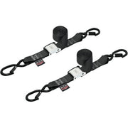 - 1-1/2" (EU: 3,81 cm) cam-buckle tie-downs with vinyl-coated safety latch hooks